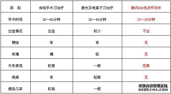 韩式DGD包皮环切术与其他技术的优势对比: