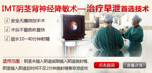 攀枝花市东区九龙医院引进的“埋置降敏术”采取有选择性的阻断敏感神经的分支,减低龟头皮肤的敏感程度的原理治疗早泄。手术后,可提高患者的性生活质量。该技术自临床应用以来,已成功实施逾万例,患者满意率达98.2%。